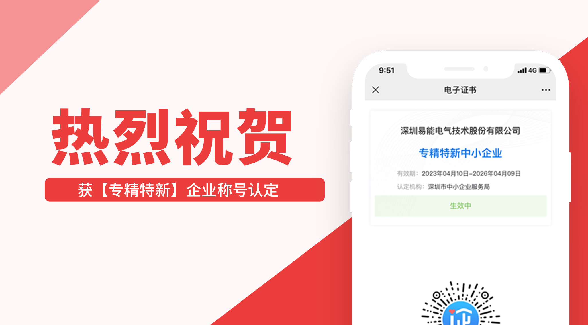 喜報I易能電氣榮獲【專精特新】企業(yè)榮譽稱號
